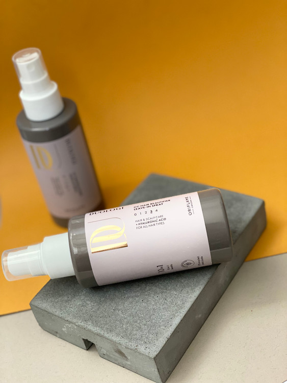 💚اسپری چند منظوره دارای هیالورونیک اسید که یک ماده مرطوب کننده هست که باعث کاهش خشکی مو و پوست سر میشود.